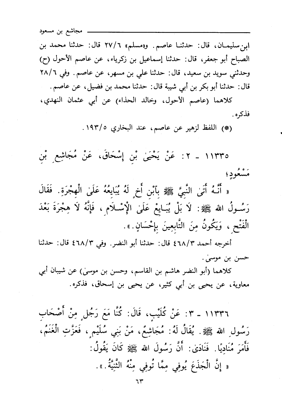 ١١٣٣٥ - عَنْ يَحْيَى بْنِ إِسْحَاقَ، عَنْ مُجَاشِعِ بْنِ مَسْعُودٍ؛