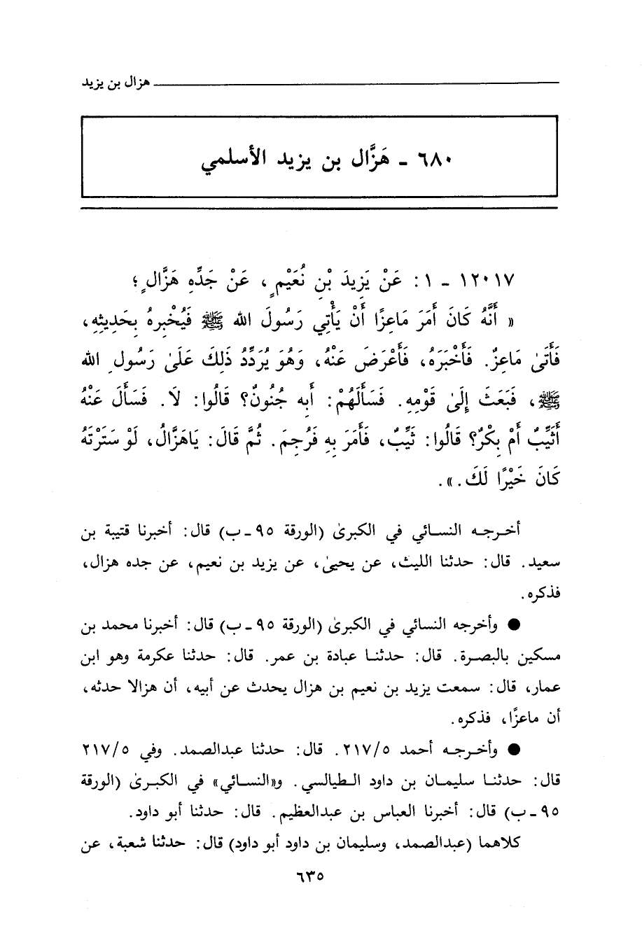 أخرجه النَّسَائِي في) الكبرى (٧٢٣٨ قال: أَخْبَرنا قُتَيْبَة بن سَعِيد، قال: حدثتا اللَّيْث، عن يَحيى، عن يَزِيد بن نُعَيْم، عن جَدِّه هَزَّال، فذكره.