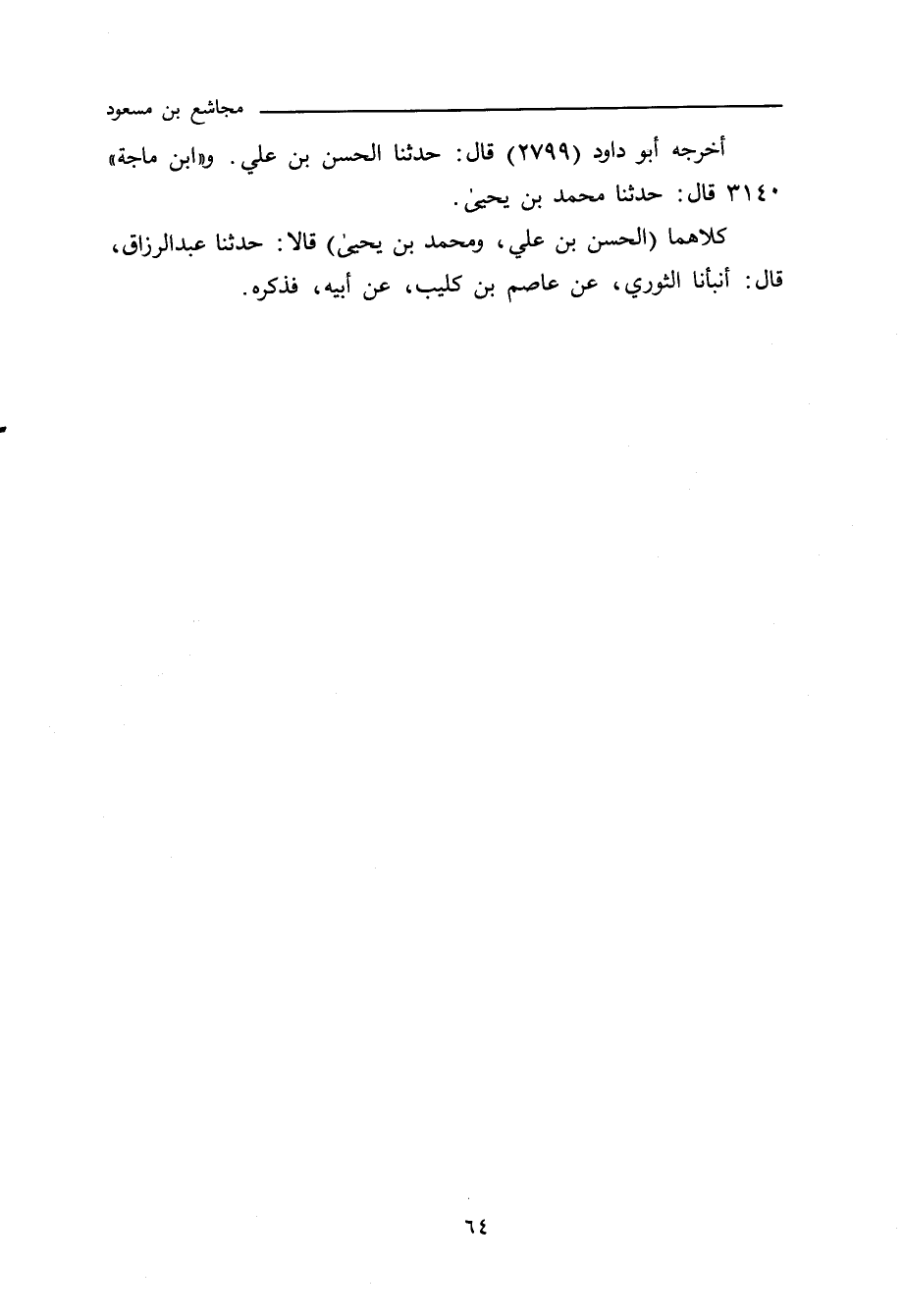 كلاهما (الحَسَن بن علي، ومُحَمد بن يَحيى) قالا: حدَّثنا عَبْد الرَّزَّاق، أنبأنا الثَّوْرِي، عن عاصم بن كُلَيْب، عن أبيه، فذكره.