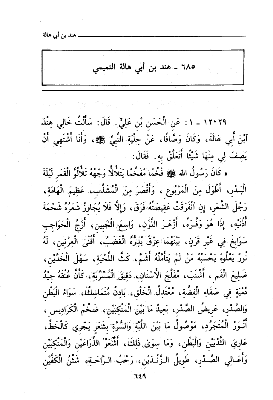 ٦٨٥ - هِنْد بن أَبي هالة التَّمِيمِيُّ