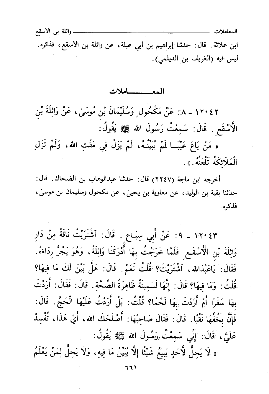مَنْ بَاعَ عَيْبًا لَمْ يُبَيِّنْهُ، لَمْ يَزَلْ فِي مَقْتِ اللهِ، وَلَمْ تَزَلِ الْمَلَائِكَةُ تَلْعَنُهُ.