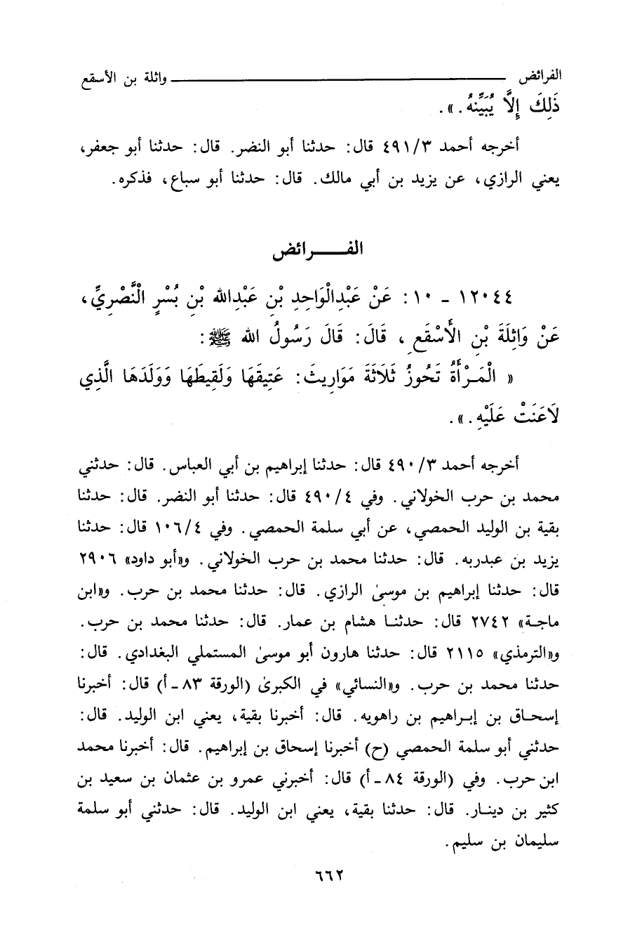 ١٢٠٤٤ - عَنْ عَبْدِ الْوَاحِدِ بْنِ عَبْدِ اللهِ بْنِ بُسْرٍ النَّصْرِيِّ، عَنْ وَاثِلَةَ بْنِ الأَسْقَعِ، قَالَ: قَالَ رَسُولُ اللهِ صلى الله عليه وسلم: