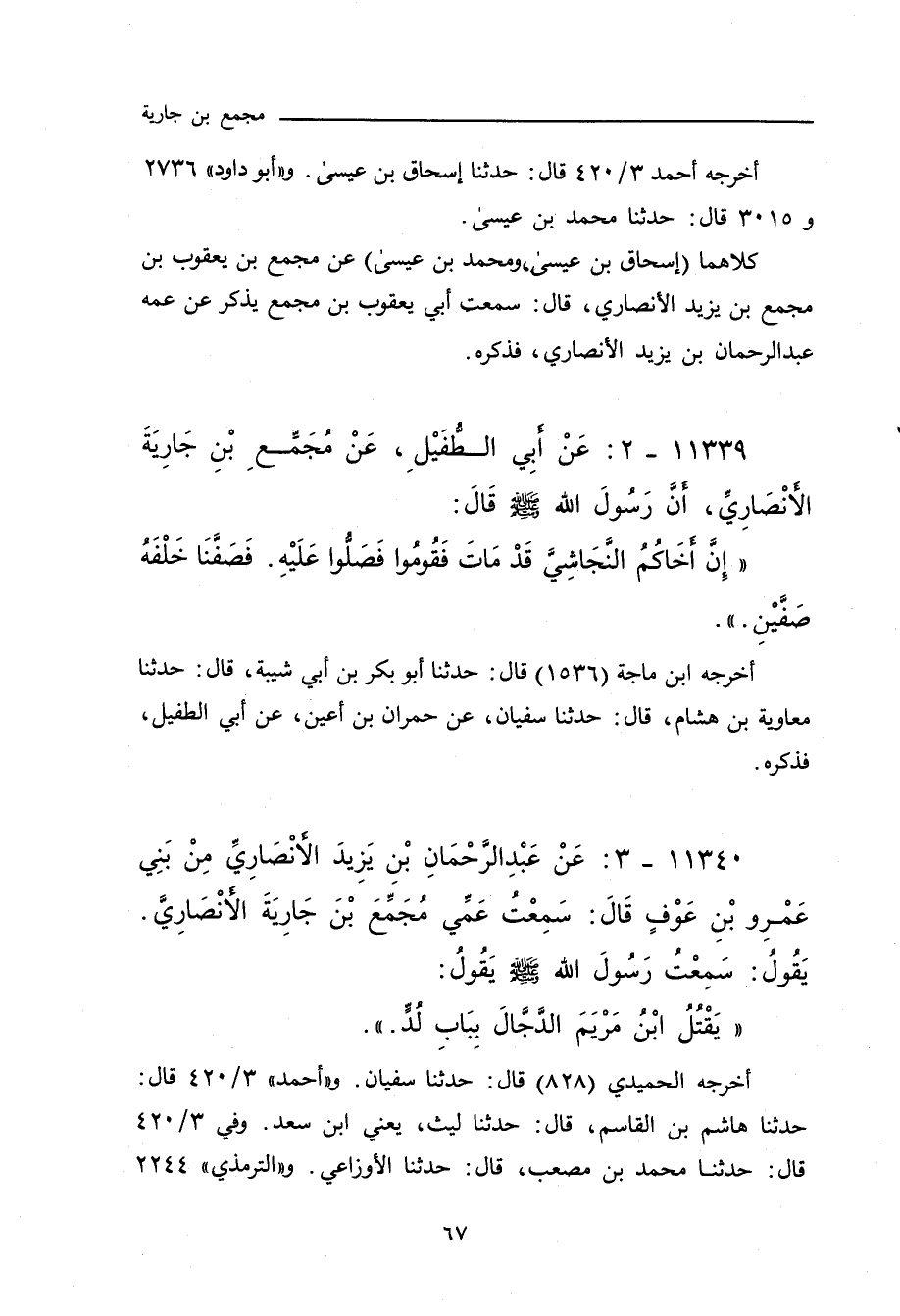١١٣٣٩ - عَنْ أَبِي الطُّفَيْلِ، عَنْ مُجَمِّعِ بْنِ جَارِيَةَ الأَنْصَارِيِّ، أَنَّ رَسُولَ اللهِ صلى الله عليه وسلم قَالَ: