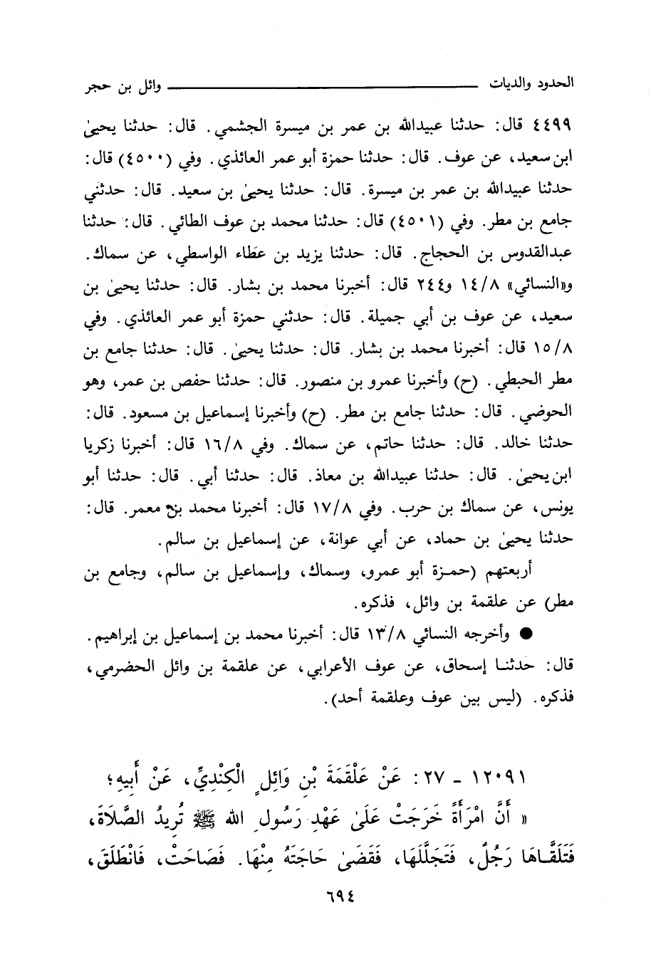 ١٢٠٩١ - عَنْ عَلْقَمَةَ بْنِ وَائِلٍ الْكِنْدِيِّ، عَنْ أَبِيهِ؛