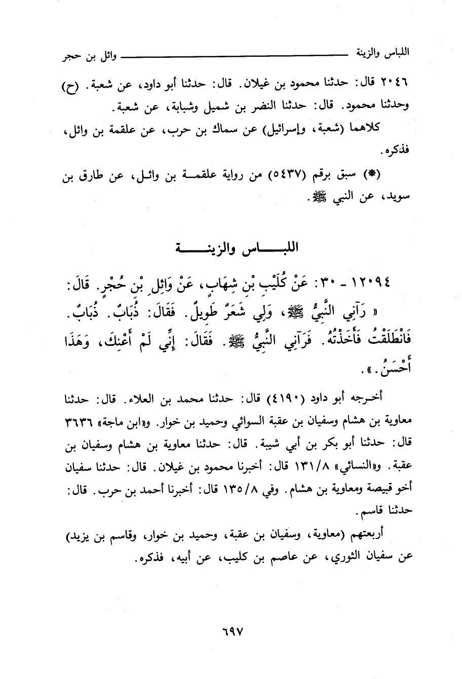١٢٠٩٤ - عَنْ كُلَيْبِ بْنِ شِهَابٍ، عَنْ وَائِلِ بْنِ حُجْرٍ، قَالَ: