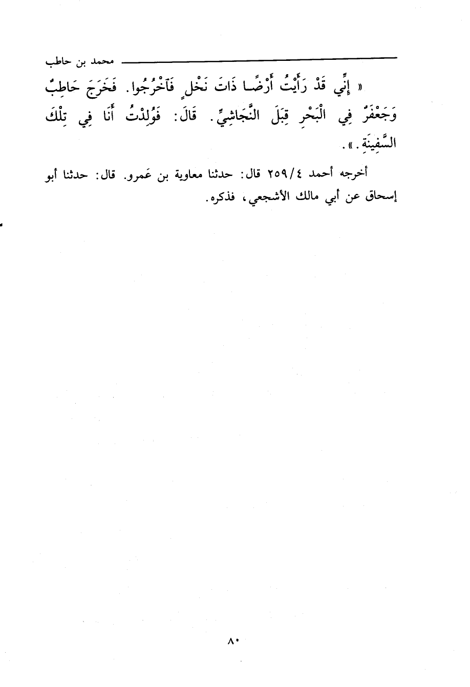 إِنِّي قَدْ رَأَيْتُ أَرْضًا ذَاتَ نَخْلٍ، فَاخْرُجُوا، فَخَرَجَ حَاطِبٌ وَجَعْفَرٌ فِي الْبَحْرِ، قِبَلَ النَّجَاشِيِّ، قَالَ: فَوُلِدْتُ أَنَا فِي تِلْكَ السَّفِينَةِ.