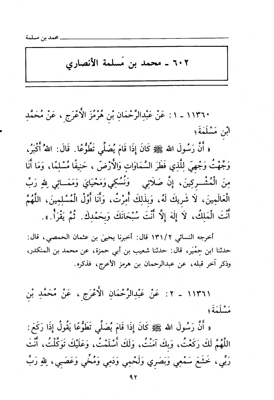 ١١٣٦١ - عَنْ عَبْدِ الرَّحْمَانِ الأَعْرَجِ، عَنْ مُحَمَّدِ بْنِ مَسْلَمَةَ؛