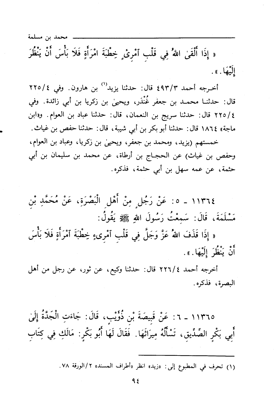 ١١٣٦٤ - عَنْ رَجُلٍ مِنْ أَهْلِ الْبَصْرَةِ، عَنْ مُحَمَّدِ بْنِ مَسْلَمَةَ، قَالَ: سَمِعْتُ رَسُولَ اللهِ صلى الله عليه وسلم يَقُولُ:
