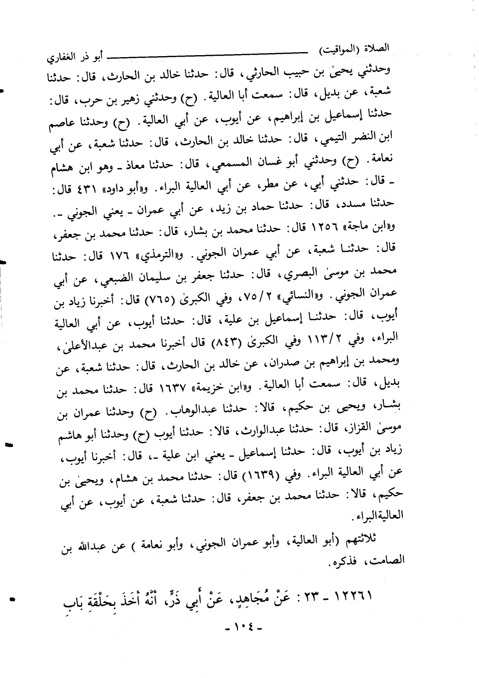 وحدثني يحيى بن حبيب الحارثي، حدَّثنا خالد بن الحارث، حدثنا شعبة، عن بديل، قال: سمعت أبا العالية. وفي (١٤١٣) قال: وحدثني زهير بن حرب، حدَّثنا إسماعيل بن إبراهيم، عن أيوب، عن أبي العالية. وفي (١٤١٤) قال: وحدثنا عاصم بن النضر التيمي، حدثنا خالد بن الحارث، حدَّثنا شعبة، عن أبي نعامة. وفي (١٤١٥) قال: وحدثني أبو غسان المسمعي، حدَّثنا معاذ، وهو ابن هشام، حدثني أبي، عن مطر، عن أبي العالية البراء. و"أبو داود" ٤٣١ قال: حدَّثنا مسدد، حدَّثنا حماد بن زيد، عن أبي عمران، يعني الجوني. و"ابن ماجة" ١٢٥٦ قال: حدَّثنا محمد بن بشار، حدَّثنا محمد بن جعفر، حدَّثنا شعبة، عن أبي عمران الجوني. و"التِّرمِذي" ١٧٦ قال: حدثنا محمد بن موسى البصري، قال: حدَّثنا جعفر بن سليمان الضبعي، عن أبي لأ عمران الجوني. و"النَّسائي" ٢/ ٧٥، وفي "الكبرى" ٨٥٦ قال: أَخْبَرنا زياد بن أيوب، قال: حدَّثنا إسماعيل بن علية، قال: حدَّثنا أيوب، عن أبي العالية البراء. وفي ٢/ ١١٣، وفي "الكبرى" ٩٣٤ قال أَخْبَرنا محمد بن عبد الأعلى، ومحمد بن إبراهيم بن صدران، عن خالد بن الحارث، قال: حدَّثنا شعبة، عن بديل، قال: سمعت أبا العالية. و"ابن خزيمة" ١٦٣٧ قال: حدَّثنا محمد بن بشار، ويحيى بن حكيم، قالا: حدَّثنا عبد الوهاب (ح) وحدثنا عمران بن موسى القزاز، حدَّثنا عبد الوارث، قالا