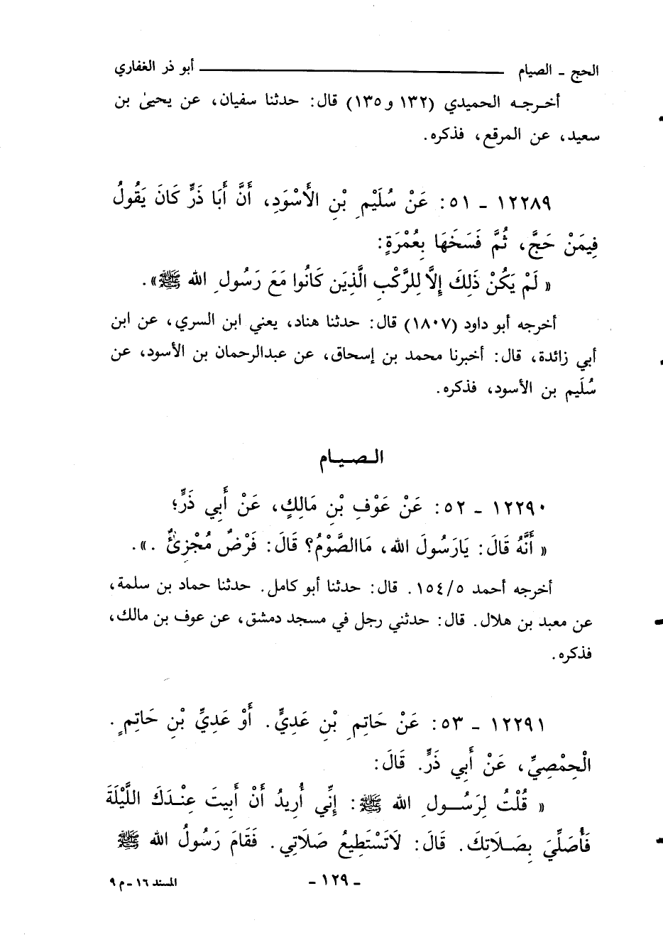 ١٢٢٨٩ - عَنْ سُلَيْمِ بْنِ الأَسْوَدِ، أَنَّ أَبَا ذَرٍّ كَانَ يَقُولُ فِيمَنْ حَجَّ ثُمَّ فَسَخَهَا بِعُمْرَةٍ: