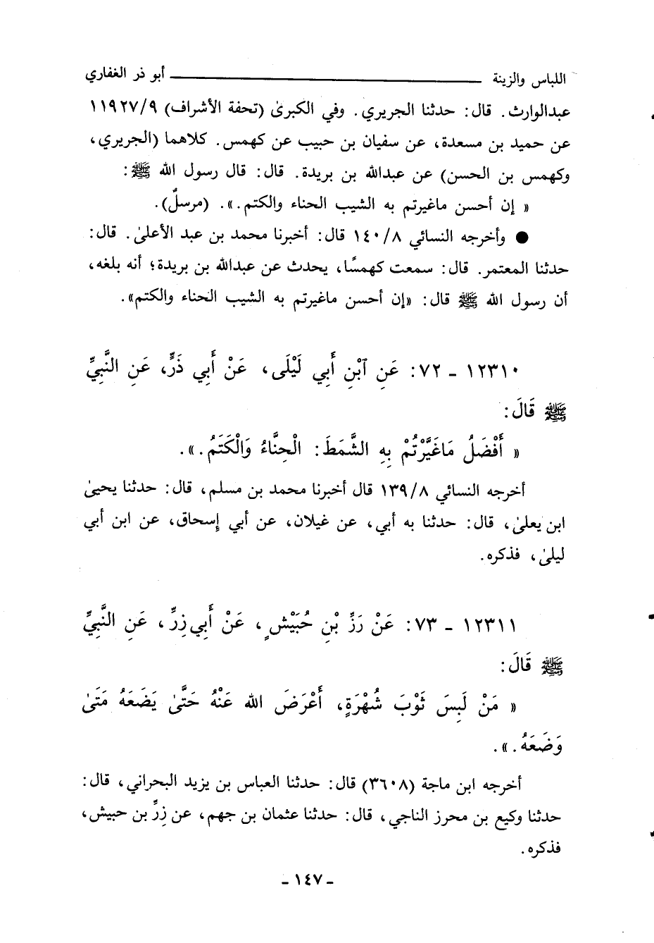 إِنَّ أَحْسَنَ مَا غَيَّرْتُمْ بِهِ الشَّيْبَ: الْحِنَّاءُ، وَالْكَتَمُ. مرسلٌ.