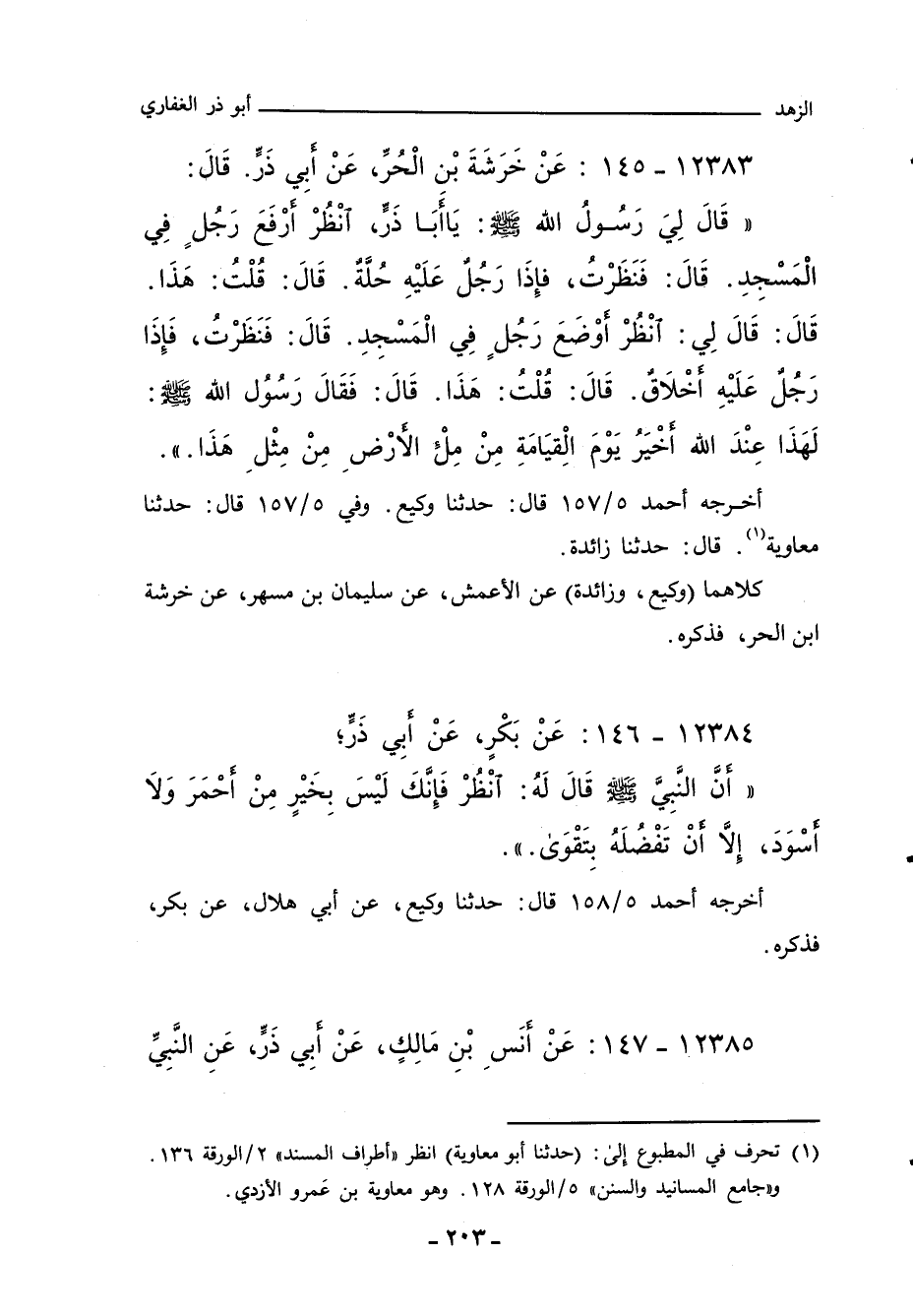 ١٢٣٨٣ - عَنْ خَرَشَةَ بْنِ الْحُرِّ، عَنْ أَبِي ذَرٍّ، قَالَ: