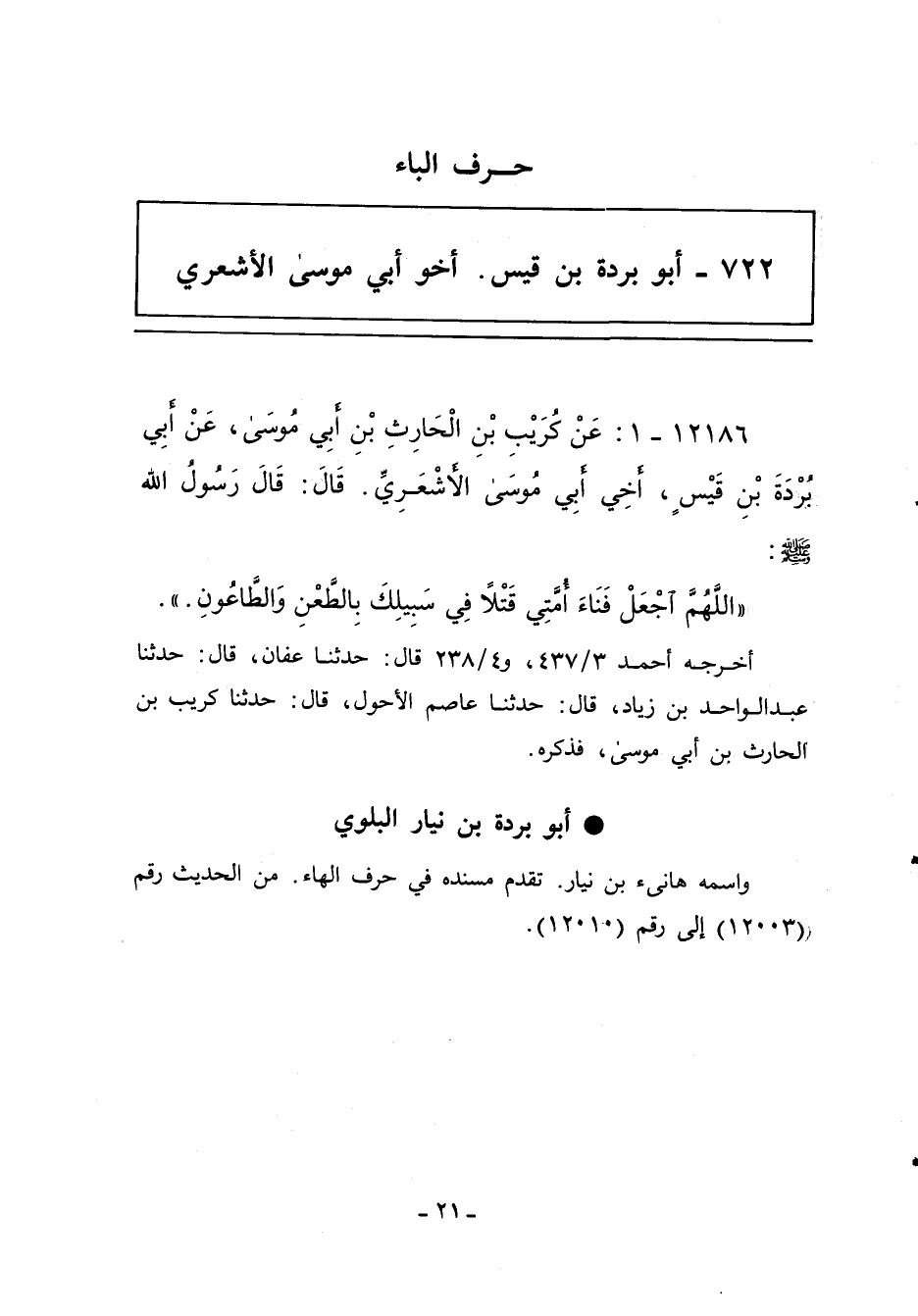 ١٢١٨٦ - عَنْ كُرَيْبِ بْنِ الْحَارِثِ بْنِ أَبِي مُوسَى، عَنْ أَبِي بُرْدَةَ بْنِ قَيْسٍ، أَخِي أَبِي مُوسَى الأَشْعَرِيِّ، قَالَ: قَالَ رَسُولُ اللهِ صلى الله عليه وسلم: