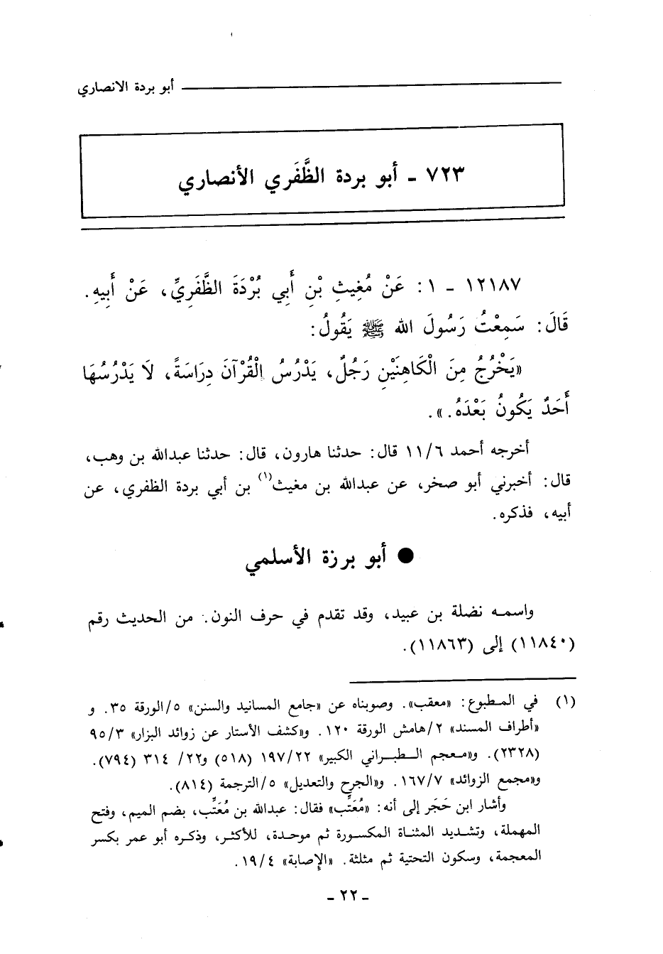 ٧٢٣ - أبو بردة الظَّفَري الأنصاري
