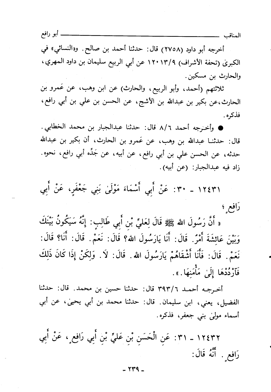- أخرجه أحمد ٦/ ٨ (٢٤٣٥٨) قال: حدَّثنا عبد الجبار بن محمد الخطابي، حدَّثنا عبد الله بن وهب، عن عَمرو بن الحارث، أن بكير بن عبد الله حدثه، عن الحسن علي بن أبي رافع، عن أبيه، عَنْ جَدِّهِ أَبِي رَافِعٍ، قَالَ: