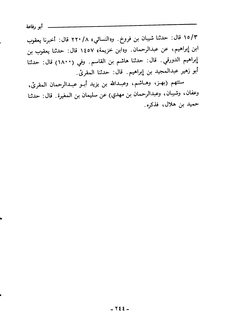 ٣/ ١٥ (١٩٨٠) قال: حدَّثنا شيبان بن فروخ. و"النَّسائي" ٨/ ٢٢٠، وفي "الكبرى" ٩٧٤٠ قال: أَخْبَرنا يعقوب بن إِبراهيم، عن عبد الرحمن. و"ابن خزيمة" ١٤٥٧ قال: حدَّثنا يعقوب بن إبراهيم الدورقي، حدَّثنا هاشم بن القاسم. وفي (١٨٠٠) قال: حدَّثنا أبو زهير، عبد المجيد بن إِبراهيم، حدَّثنا المقرئ.