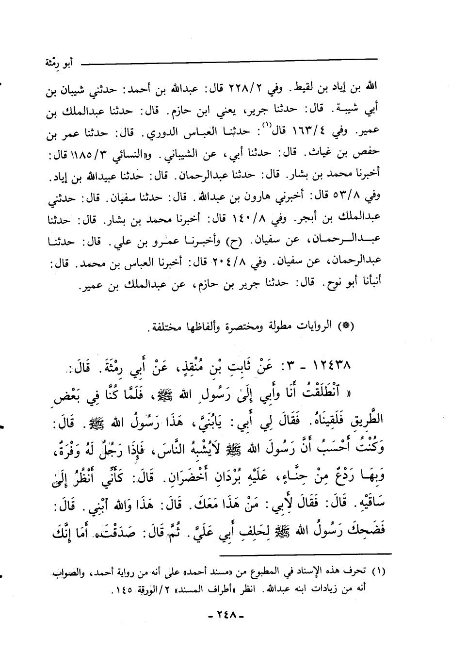١٢٤٣٨ - عَنْ ثَابِتِ بْنِ مُنْقِذٍ، عَنْ أَبِي رِمْثَةَ، قَالَ: