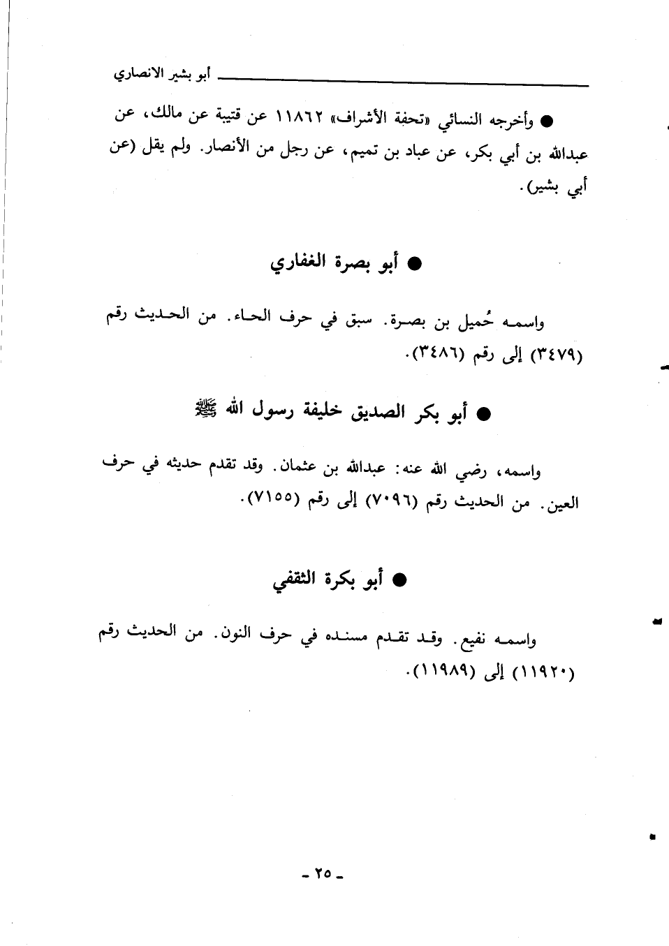 واسمه , رضي الله عنه: عبد الله بن عثمان. وقد تقدم حديثه في حرف العين. من الحديث رقم (٧٠٩٦) إلى رقم (٧١٥٥".