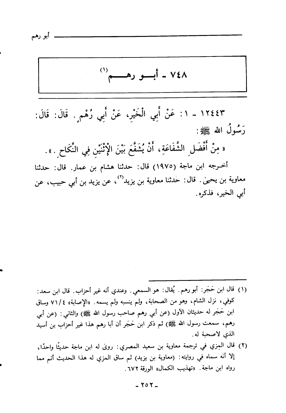 ١٢٤٤٣ - عَنْ أَبِي الْخَيْرِ، عَنْ أَبِي رُهْمٍ، قَالَ: قَالَ رَسُولُ اللهِ صلى الله عليه وسلم:
