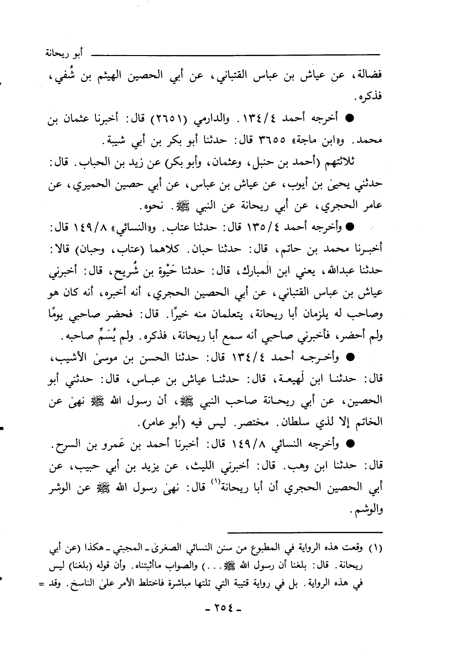 ثلاثتهم (أبو بكر بن أَبي شَيْبَة، وأحمد بن حنبل، وعثمان) عن زيد بن الحباب، حدثني يحيى بن أيوب، عن عياش بن عباس الحِمْيَري، عن أبي حصين الحَجْري، عن عامر الحَجْري، عَنْ أَبِي رَيْحَانَةَ، عَنِ النَّبِيِّ صلى الله عليه وسلم؛