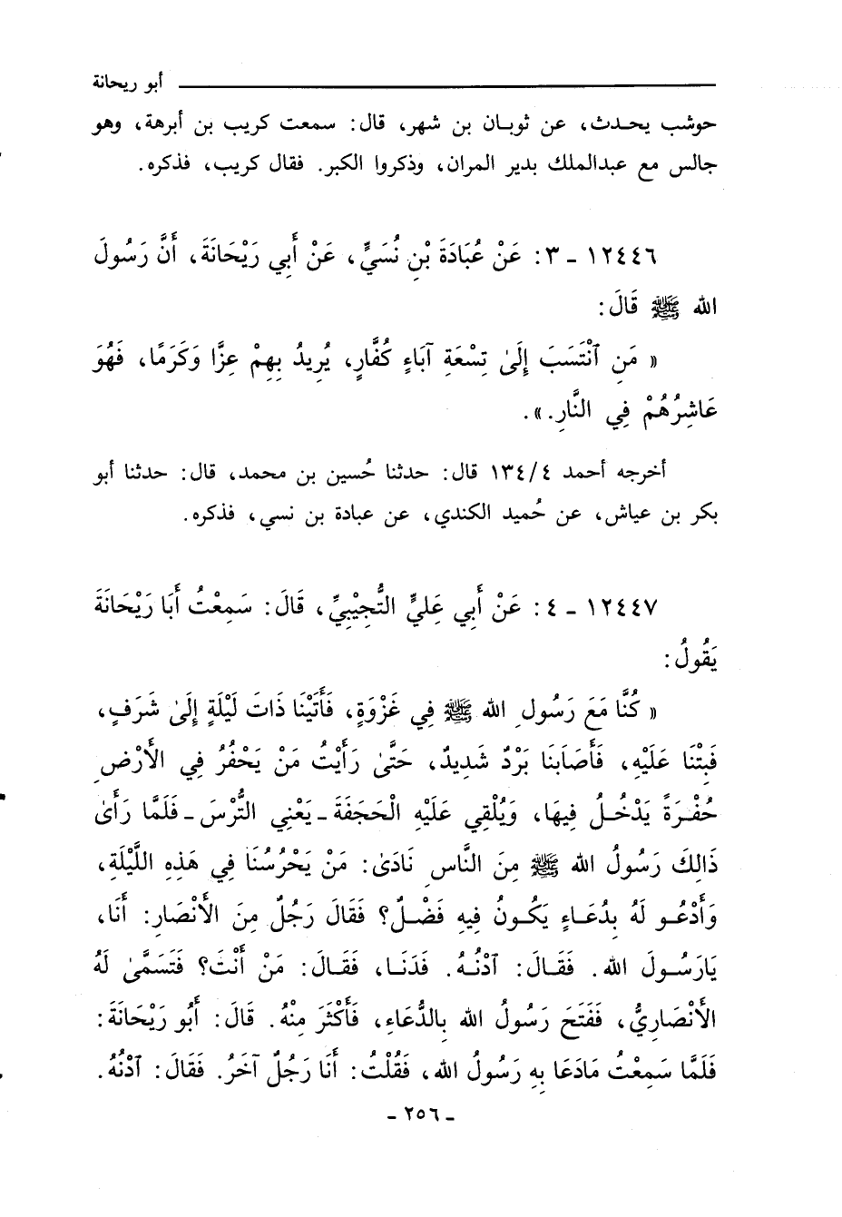 ١٢٤٤٦ - عَنْ عُبَادَةَ بْنِ نُسَيٍّ، عَنْ أَبِي رَيْحَانَةَ، أَنَّ رَسُولَ اللهِ صلى الله عليه وسلم قَالَ: