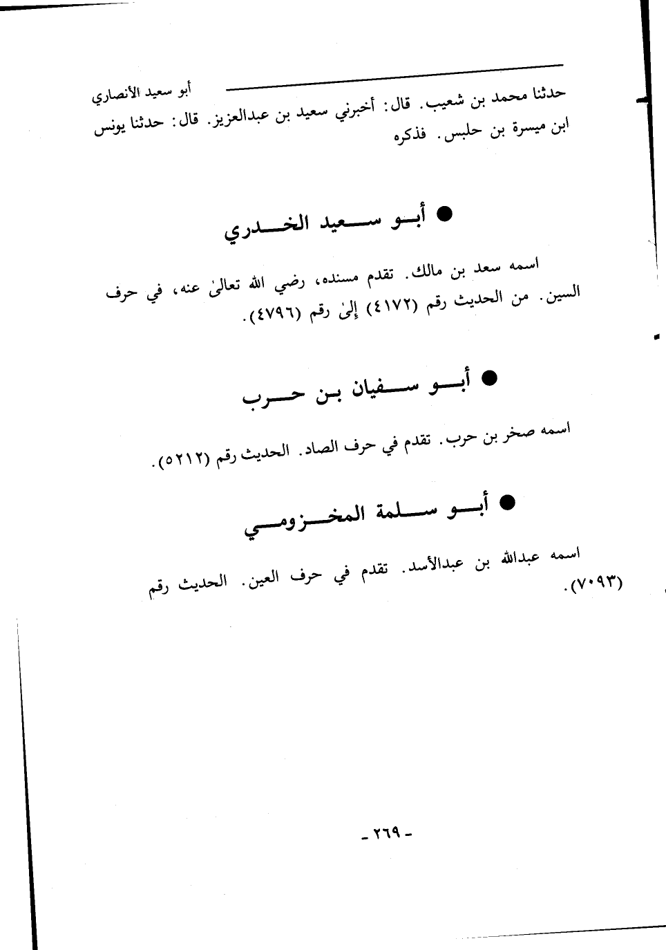 اسمه صخر بن حرب، تقدم في حرف الصاد، الحديث رقم (٥٢١٢".