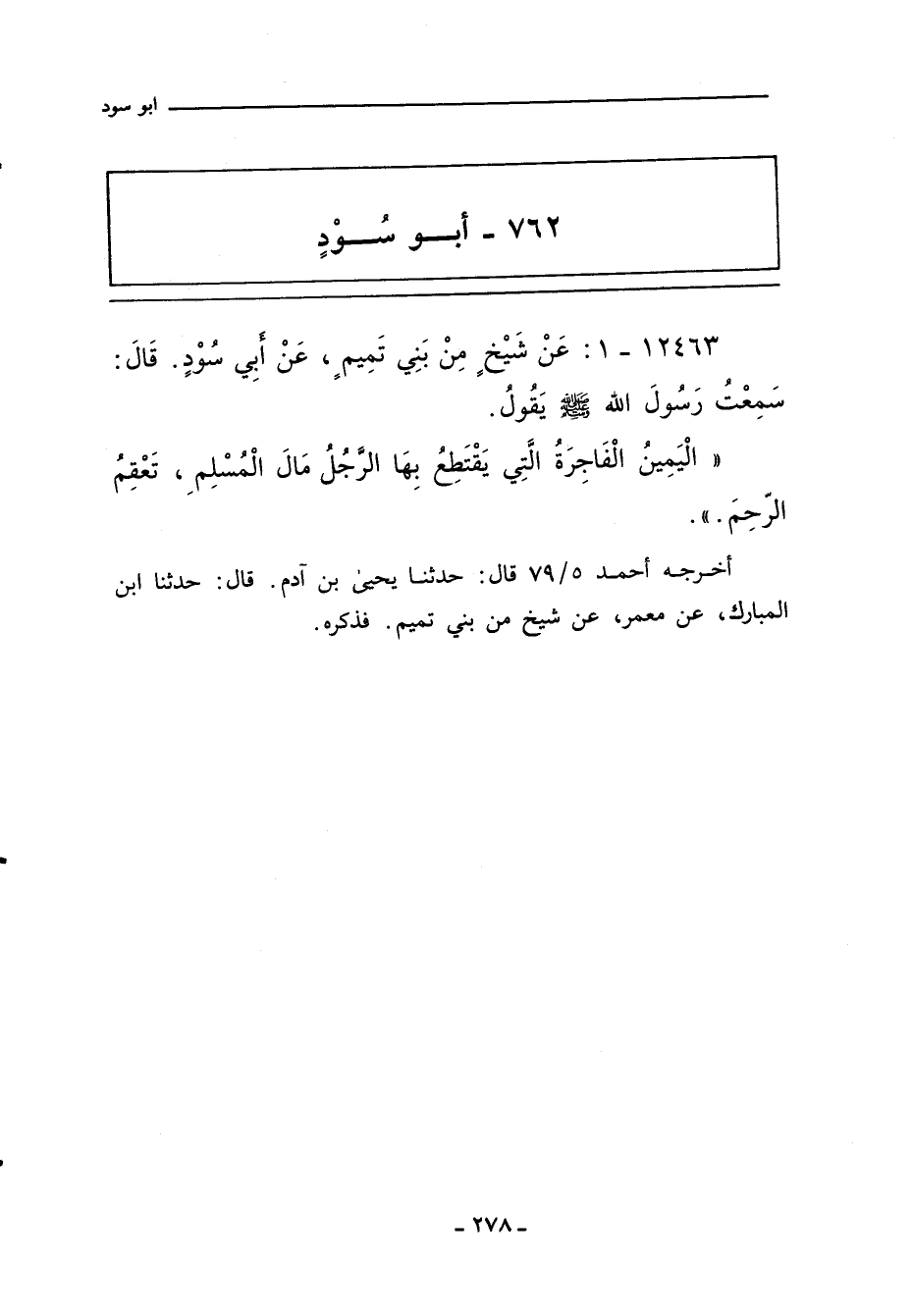 ١٢٤٦٣ - عَنْ شَيْخٍ مِنْ بَنِي تَمِيمٍ، عَنْ أَبِي سُودٍ، قَالَ: سَمِعْتُ رَسُولَ اللهِ صلى الله عليه وسلم يَقُولُ:
