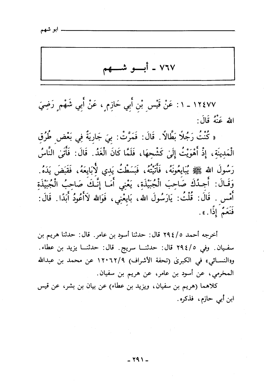 ١٢٤٧٧ - عَنْ قَيْسِ بْنِ أَبِي حَازِمٍ، عَنْ أَبِي شَهْمٍ، قَالَ: