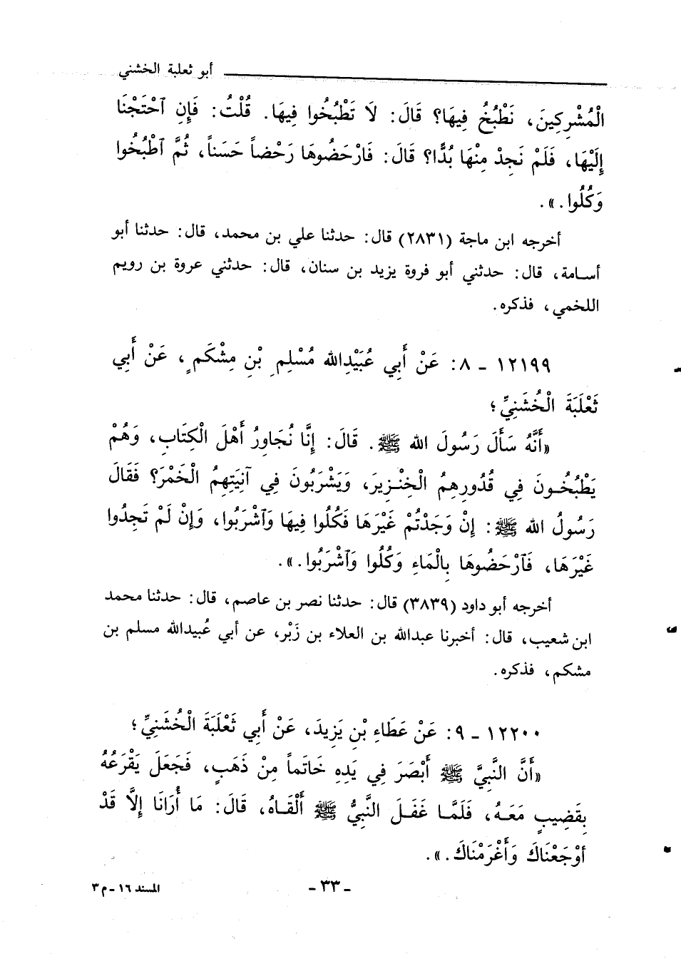 ١٢١٩٩ - عَنْ أَبِي عُبَيْدِ اللهِ، مُسْلِمِ بْنِ مِشْكَمٍ، عَنْ أَبِي ثَعْلَبَةَ الْخُشَنِيِّ؛
