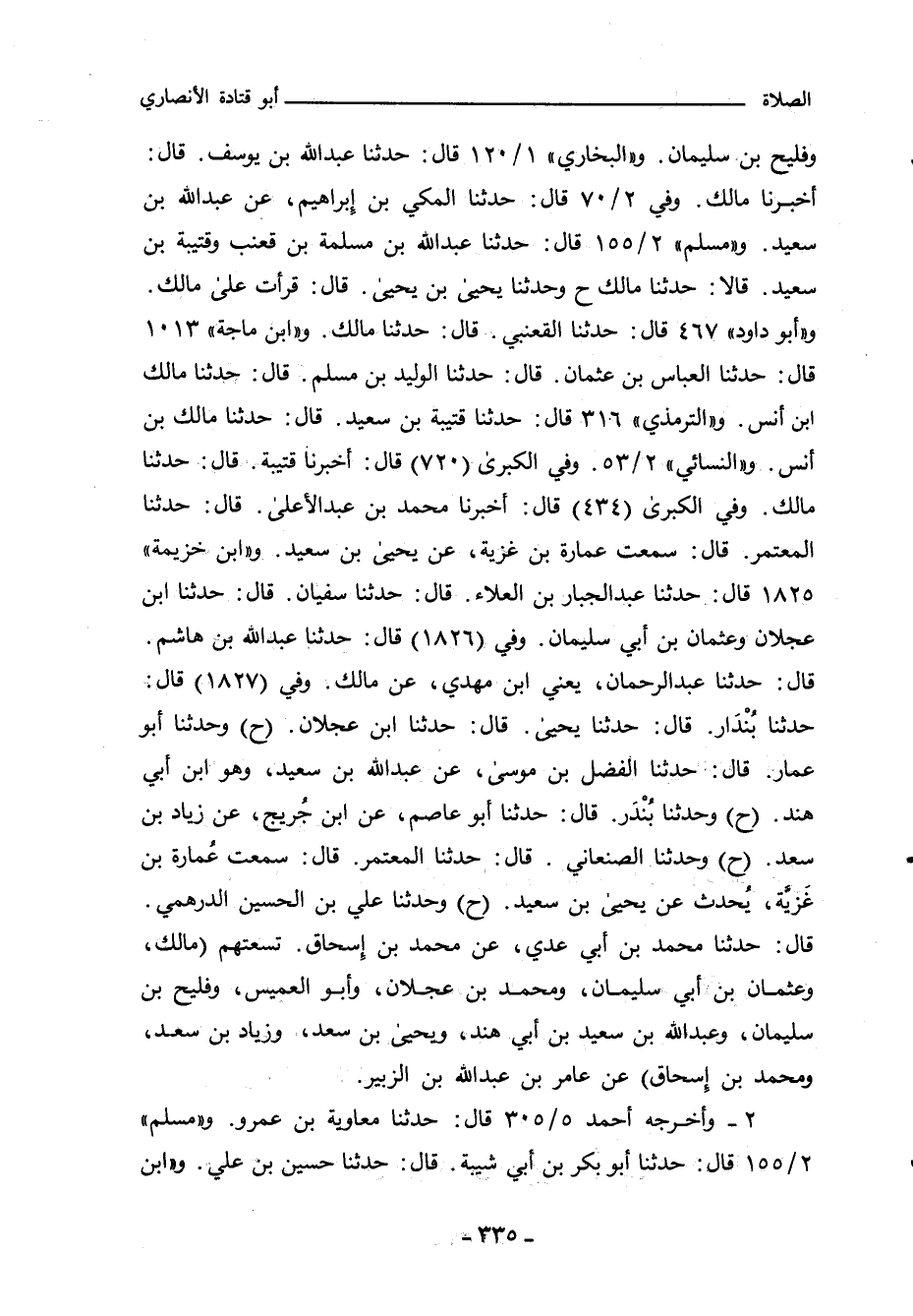 وفليح بن سليمان. و"البُخاري" ١/ ١٢٠ (٤٤٤) قال: حدَّثنا عبد الله بن يوسف، قال: أَخْبَرنا مالك. وفي ٢/ ٧٠ (١١٦٣) قال: حدَّثنا المكي بن إِبراهيم، عن عبد الله بن سعيد. و"مسلم" ٢/ ١٥٥ (١٦٠١) قال: حدَّثنا عبد الله بن مسلمة بن قعنب، وقتيبة بن سعيد، قالا: حدَّثنا مالك (ح) وحدَّثنا يحيى بن يحيى، قال: قرأتُ على مالك. و"أبو داود" ٤٦٧ قال: حدَّثنا القعنبي، حدَّثنا مالك. و"ابن ماجة" ١٠١٣ قال: حدَّثنا العباس بن عثمان، حدَّثنا الوليد بن مسلم، حدَّثنا مالك بن أنس. و"التِّرمِذي" ٣١٦ قال: حدَّثنا قتيبة بن سعيد، حدَّثنا مالك بن أنس. و"النَّسائي" ٢/ ٥٣، وفي "الكبرى" ٨١١ قال: أَخْبَرنا قتيبة، قال: حدَّثنا مالك. وفي "الكبرى" ٥٢٤ قال: أَخْبَرنا محمد بن عبد الأعلى، قال: حدَّثنا المعتمر، قال: سمعت عمارة بن غزية، يُحدِّث عن يحيى بن سعيد. و"ابن خزيمة" ١٨٢٥ قال: حدَّثنا عبد الجبار بن العلاء، حدَّثنا سفيان، حدَّثنا ابن عجلان، وعثمان بن أبي سليمان. وفي (١٨٢٦) قال: حدَّثنا عبد