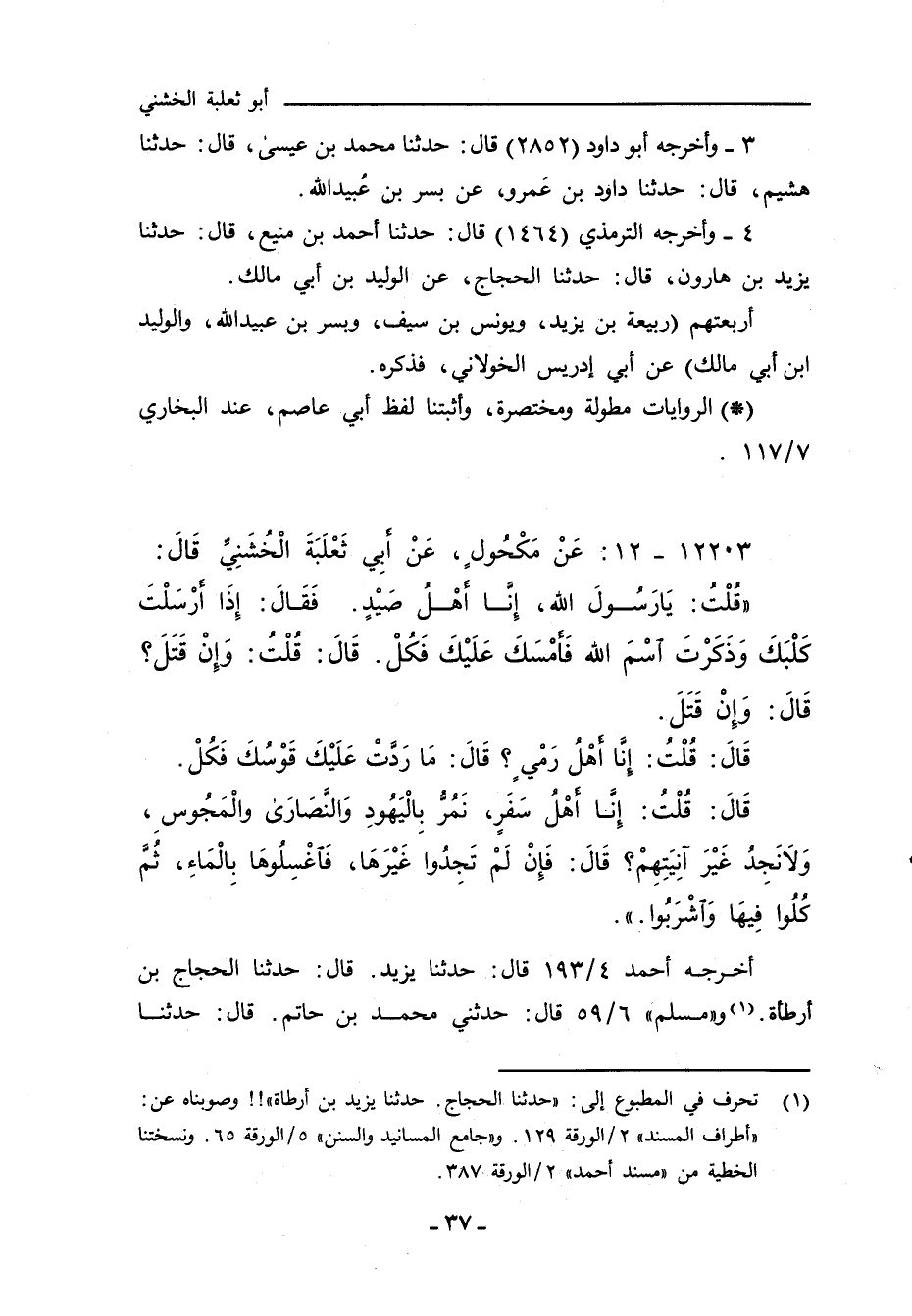 وفي ٤/ ١٩٥ (١٧٩٠٤) قال: حدَّثنا عبد الله بن يزيد، حدَّثنا حَيْوة، أخبرني رَبِيعة بن يزيد الدِّمَشْقي. و"الدارِمِي" ٢٤٩٩ قال: أَخْبَرنا أبو عاصم، عن حَيْوة بن شُرَيح، حدَّثني ربيعة بن يزيد. و"البُخَارِي" ٧/ ١١١ (٥٤٧٨) قال: حدَّثنا عبد الله بن يزيد، حدَّثنا حَيْوة، قال: أخبرني رَبِيعة بن يزيد الدِّمَشْقي. وفي ٧/ ١١٤ و ١١٧ (٥٤٨٨ و ٥٤٩٦) قال: حدَّثنا أبو عاصم، عن حَيْوة بن شُرَيح، قال: حدَّثني ربيعة بن يزيد الدِّمَشْقي. وفي ٧/ ١١٤ (٥٤٨٨) قال: وحدثني أحمد بن أبي رجاء، حدَّثنا سلمة بن سليمان، عن ابن المبارك، عن حَيْوة بن شُرَيح، قال: سمعتُ ربيعة بن يزيد الدِّمَشقي. و"مسلم" ٦/ ٥٨ (٥٠٢٢) قال: حدَّثنا هناد بن السري، حدَّثنا ابن المبارك، عن حَيْوة بن شُرَيح، قال: سمعتُ ربيعة بن يزيد الدِّمَشقي. وفي ٦/ ٥٩ (٥٠٢٣) قال: وحدثني أبو الطاهر، أَخْبَرنا ابن وهب (ح) وحدثني زهير بن حرب، حدَّثنا المقرئ، كلاهما عن حَيْوة بهذا الإسناد. و"أبو داود" ٢٨٥٢ قال: حدَّثنا محمد بن عيسى، حدَّثنا هشيم، حدَّثنا داود بن عَمرو، عن بسر بن عُبيد الله. وفي (٢٨٥٥) قال: حدَّثنا هناد بن السري، عن ابن المبارك، عن حَيْوة بن شُرَيح، قال: سمعتُ ربيعة بن يزيد الدِّمَشقي. وفي (٢٨٥٦) قال: حدَّثنا محمد بن المصفى، حدَّثنا محمد بن حرب (ح) وحدثنا محمد بن المصفى، حدَّثنا بقية، عن الزُّبَيدي، حدَّثنا يُونس بن سَيْف. و"ابن ماجة" ٣٢٠٧ قال: حدَّثنا محمد بن المثنى، حدَّثنا الضحاك بن مخلد، حدَّثنا حَيْوة بن شُرَيح، حدَّثني ربيعة بن يزيد. و"التِّرمِذي"١٤٦٤ قال: حدَّثنا أحمد بن منيع، حدَّثنا يزيد بن هارون، حدَّثنا الحجاج، عن الوليد بن أبي