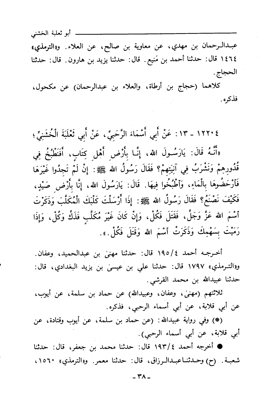 ١٢٢٠٤ - عَنْ أَبِي أَسْمَاءَ الرَّحَبِيِّ، عَنْ أَبِي ثَعْلَبَةَ الْخُشَنِيِّ؛