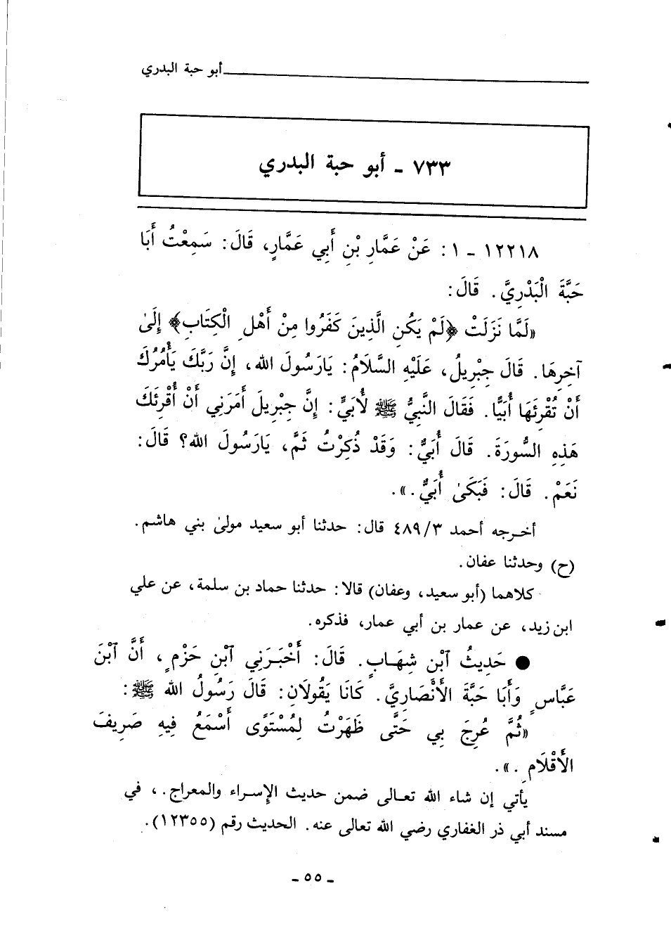 يأتي إن شاء الله تعالى ضمن حديث الإِسراء والمعراج، في مسند أبي ذر الغفاري، رضي الله تعالى عنه، الحديث رقم (١٢٣٥٥".