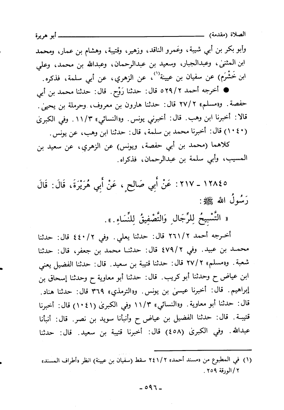 - وفي رواية: " (التَّسْبِيحُ فِي الصَّلَاةِ لِلرِّجَالِ، وَالتَّصْفِيقُ لِلنِّسَاءِ.) ".