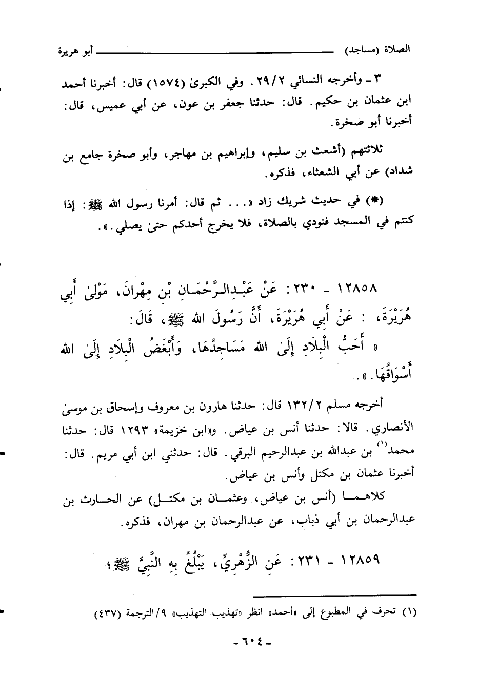 ١٢٨٥٨ - عَنْ عَبْدِ الرَّحْمَانِ بْنِ مِهْرَانَ، مَوْلَى أَبِي هُرَيْرَةَ، عَنْ أَبِي هُرَيْرَةَ، أَنَّ رَسُولَ اللهِ صلى الله عليه وسلم قَالَ: