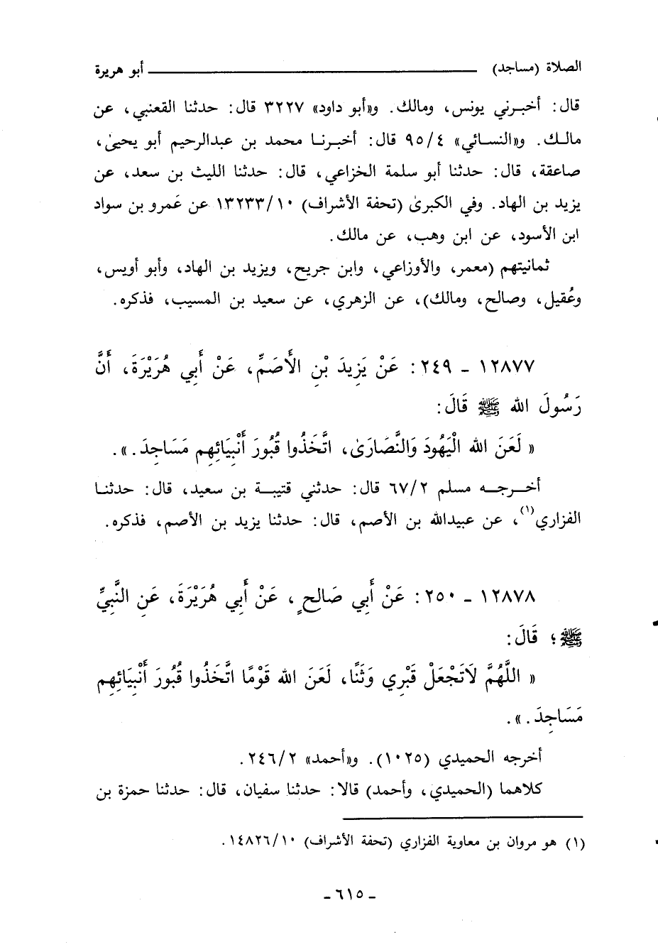 (لَعَنَ اللَّهُ الْيَهُودَ وَالنَّصَارَى، اتَّخَذُوا قُبُورَ أَنْبِيَائِهِمْ مَسَاجِدَ.) ".