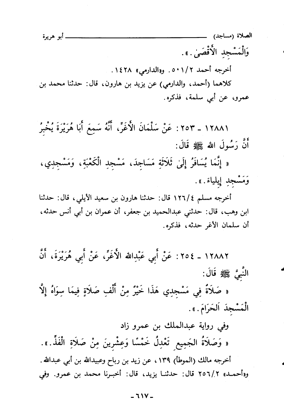 - لفظ الدارِمِي: " (لَا تُشَدُّ الرِّحَالُ إِلَاّ إِلَى ثَلَاثَةِ مَسَاجِدَ: الْكَعْبَةِ، وَمَسْجِدِي هَذَا، وَمَسْجِدِ الأَقْصَى.) ".