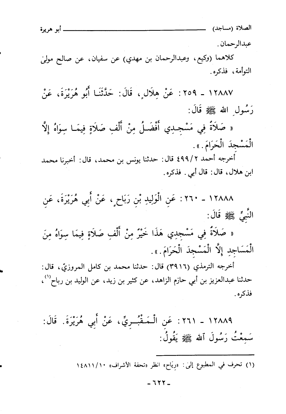 (صَلَاةٌ فِي مَسْجِدِي هَذَا، خَيْرٌ مِنْ أَلْفِ صَلَاةٍ فِيمَا سِوَاهُ مِنَ الْمَسَاجِدِ، إِلَاّ الْمَسْجِدَ الْحَرَامَ.) ".