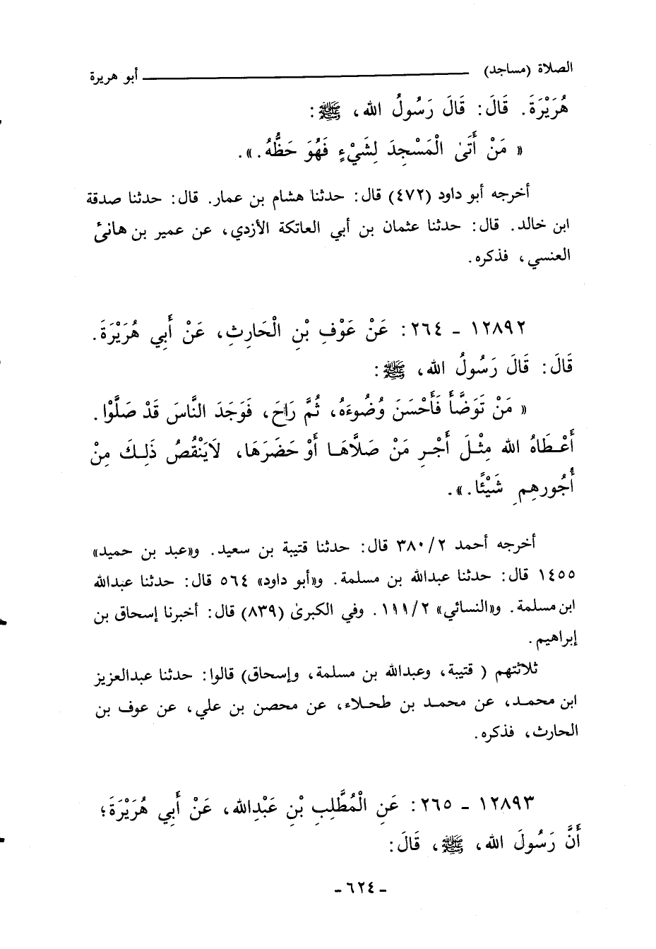 - وفي رواية: " (مَنْ تَوَضَّأَ فَأَحْسَنَ الْوُضُوءَ، ثُمَّ خَرَجَ عَامِدًا إِلَى الْمَسْجِدِ، فَوَجَدَ النَّاسَ قَدْ صَلَّوْا، كَتَبَ اللَّهُ لَهُ مِثْلَ أَجْرِ مَنْ حَضَرَهَا، وَلَا يَنْقُصُ ذَلِكَ مِنْ أُجُورِهِمْ شَيْئًا.) ".