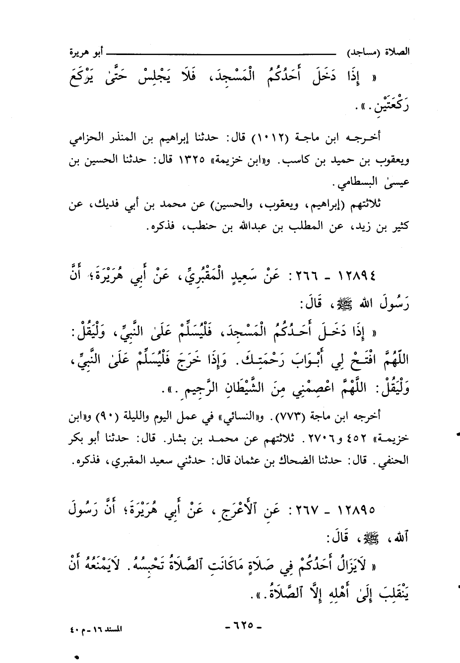 (إِذَا دَخَلَ أَحَدُكُمُ الْمَسْجِدَ، فَلَا يَجْلِسْ حَتَّى يَرْكَعَ رَكْعَتَيْنِ.) ".