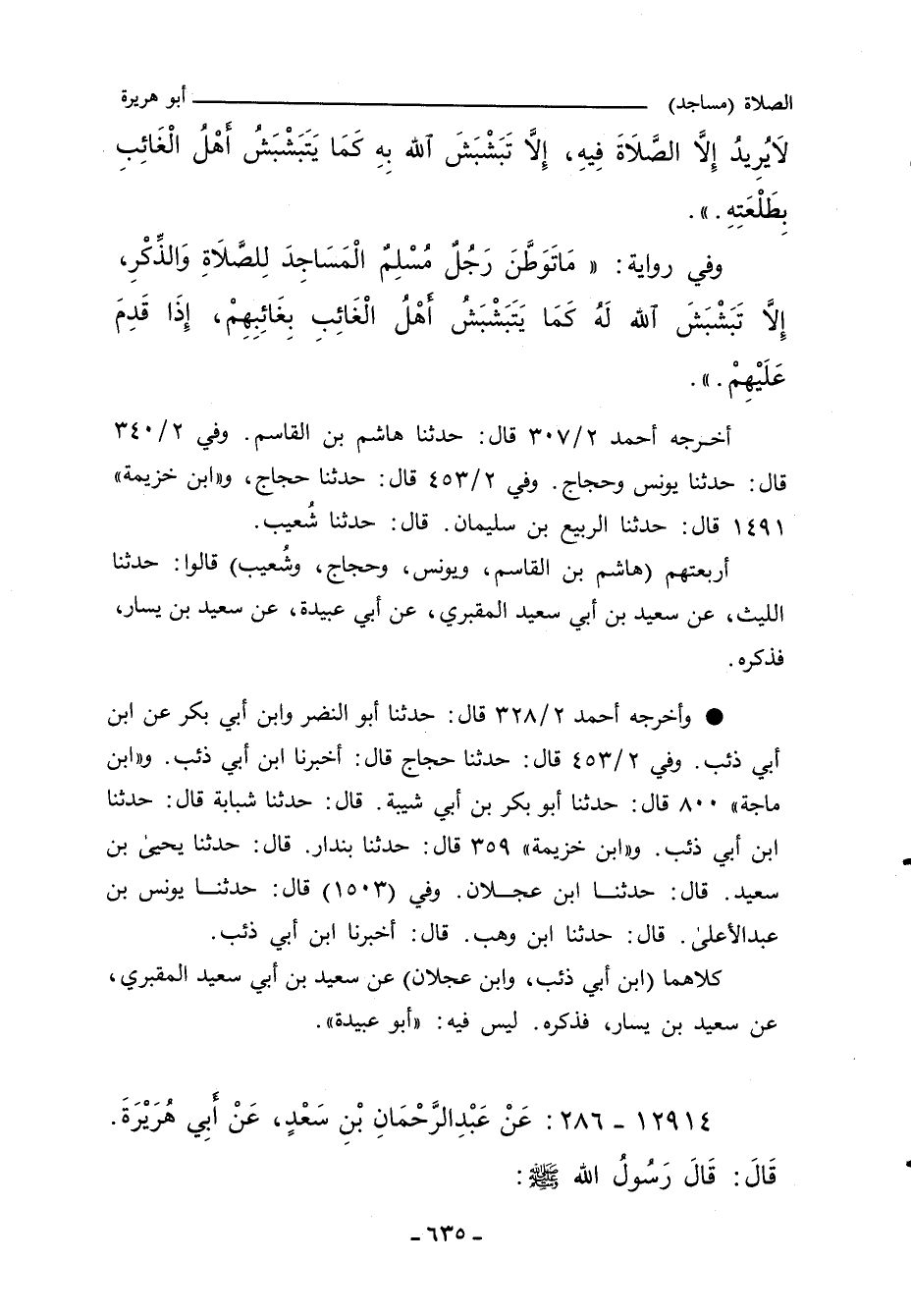 (لَا يُوطِنُ رَجُلٌ مُسْلِمٌ الْمَسَاجِدَ لِلصَّلَاةِ وَالذِّكْرِ، إِلَاّ تَبَشْبَشَ اللَّهُ بِهِ، يَعْنِي حِينَ يَخْرُجُ مِنْ بَيْتِهِ، كَمَا يَتَبَشْبَشُ أَهْلُ الْغَائِبِ بِغَائِبِهِمْ إِذَا قَدِمَ عَلَيْهِمْ.) ".