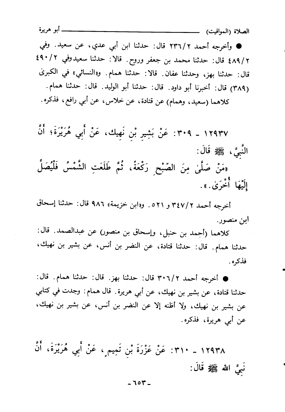 ١٢٩٣٧ - عَنْ بَشِيرِ بْنِ نَهِيكٍ، عَنْ أَبِي هُرَيْرَةَ، أَنَّ النَّبِيَّ صلى الله عليه وسلم قَالَ: