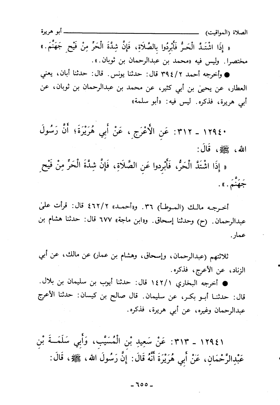 أخرجه مالك ((الموطأ))]] ٣٦. وأحمد ٢/ ٤٦٢ (٩٩٥٧) قال: قرأت على عبد الرحمن: مالك. (ح) وحدَّثنا إسحاق، قال: أَخْبَرنا مالك. و ((ابن ماجة))]] ٦٧٧ قال: حدَّثنا هشام بن عمار، حدَّثنا مالك بن أنس. و ((أبو يَعْلَى))]] ٦٣١٤ قال: حدثنا وهب بن بقية، أَخْبَرنا خالد، عن عبد الرحمن.