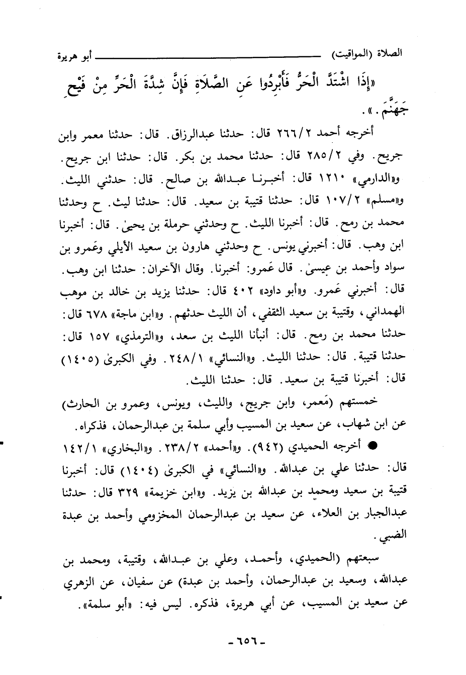 أخرجه عبد الرَّزَّاق (٢٠٤٩) عن ابن جريج، ومعمر. و ((أحمد))]] ٢/ ٢٦٦ (٧٦٠٢) قال: حدَّثنا عبد الرزاق، حدَّثنا معمر، وابن جريج. وفي ٢/ ٢٨٥ (٧٦٠٢) قال: حدَّثنا محمد بن بكر، حدَّثنا ابن جريج. و ((الدارِمِي))]] ١٢٠٧ قال: أَخْبَرنا عبد الله بن صالح، حدثي الليث. و ((مسلم))]] ١٣٣٨ قال: حدَّثنا قتيبة بن سعيد، حدَّثنا ليث (ح) وحدَّثنا محمد بن رمح، أَخْبَرنا الليث. وفي (١٣٣٩) قال: وحدثني حرملة بن يحيى، أَخْبَرنا ابن وهب، أخبرني يونس. وفي (١٣٤٢) قال: وحدثني هارون بن سعيد الأيلي، وعَمرو بن سواد، وأحمد بن عيسى، قال عَمرو: أَخْبَرنا، وقال الآخران: حدَّثنا ابن وهب، قال: أخبرني عَمرو. و ((أبو داود))]] ٤٠٢ قال: حدَّثنا يزيد بن خالد بن موهب الهمداني، وقتيبة بن سعيد الثقفي، أن الليث حدثهم. و ((ابن ماجة))]] ٦٧٨ قال: حدَّثنا محمد بن رمح، أنبأنا الليث بن سعد. و ((التِّرمِذي))]] ١٥٧ قال: حدَّثنا قتيبة، حدَّثنا الليث. و ((النَّسائي))]] ١/ ٢٤٨، وفي ((الكبرى))]] ١٥٠١ قال: أَخْبَرنا قتيبة بن سعيد، قال: حدَّثنا الليث. و ((ابن حبان))]] ١٥٠٧ قال: أَخْبَرنا محمد بن الحسن بن قتيبة، قال: حدثنا يزيد بن موهب، قال: حدثني الليث.