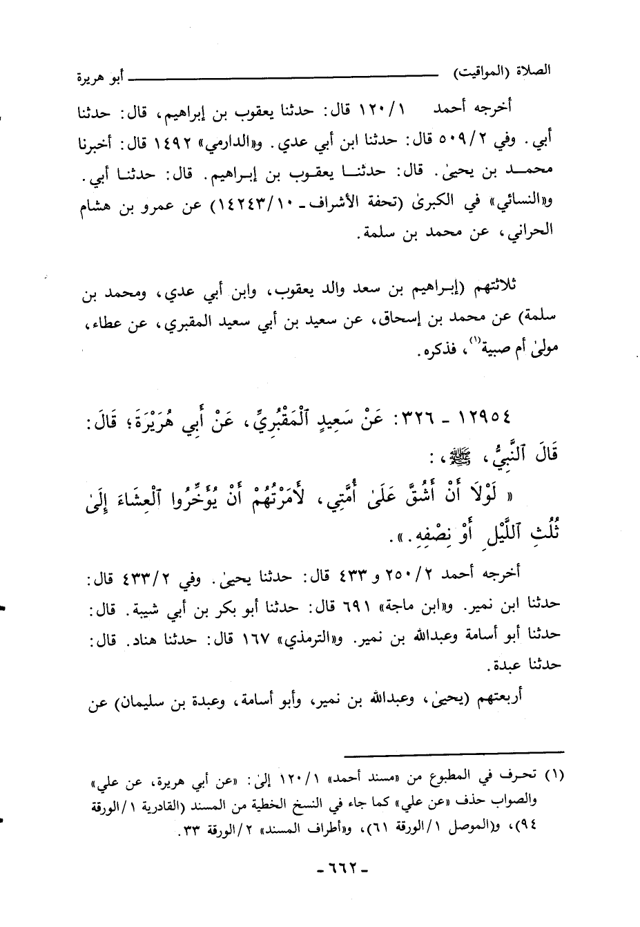 أخرجه أحمد ٢/ ٢٥٠ و ٢/ ٤٣٣ قال: حدَّثنا يحيى. وفي ٢/ ٤٣٣ قال: حدَّثنا ابن نمير. و"ابن ماجة" ٦٩١ قال: حدَّثنا أبو بكر بن أبي شَيْبة. قال: حدَّثنا أبو أسامة، وعبد الله بن نُمير. و"التِّرمِذي" ١٦٧ قال: حدَّثنا هناد، حدَّثنا عبدة