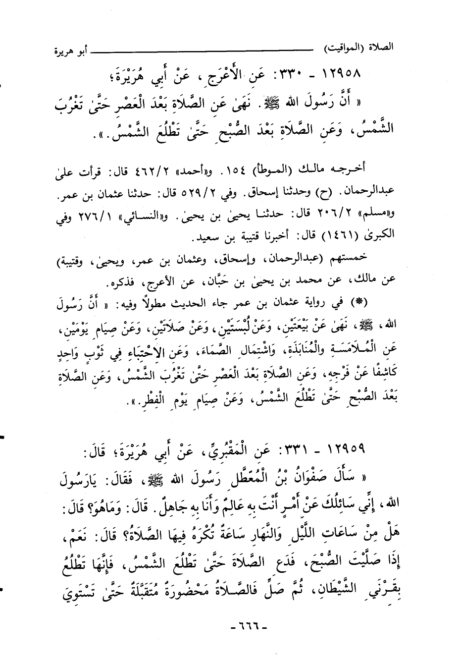(أَنَّ رَسُولَ اللهِ صلى الله عليه وسلم نَهَى عَنِ الصَّلَاةِ بَعْدَ الْعَصْرِ حَتَّى تَغْرُبَ الشَّمْسُ، وَعَنِ الصَّلَاةِ بَعْدَ الصُّبْحِ حَتَّى تَطْلُعَ الشَّمْسُ.) ".
