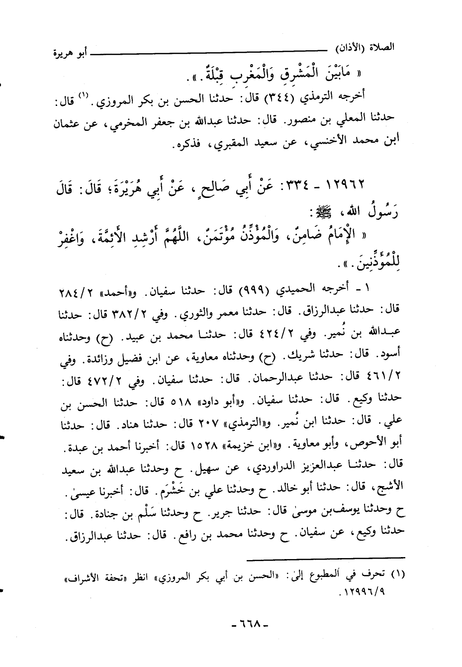 ا - أخرجه عبد الرَّزَّاق (١٨٣٨) عن معمر، والثوري. و ((الحميدي))]] ٩٩٩ قال: حدَّثنا سفيان. و ((أحمد))]] ٢/ ٢٨٤ (٧٨٠٥) قال: حدَّثنا عبد الرزاق، حدَّثنا معمر، والثوري. وفي ٢/ ٣٨٢ (٨٩٥٨) قال: حدَّثنا عبد الله بن نُمير. وفي ٢/ ٤٢٤ (٩٤٧٢) قال: حدَّثنا محمد بن عبيد. وفي (٩٤٧٣) قال: وكذا حدَّثناه أسود، قال: حدَّثنا شريك (ح) قال: وكذا قال يعني ابن فضيل أيضًا، وزائدة أيضًا حدَّثناه معاوية، يعني عنه. وفي ٢/ ٤٦١ (٩٩٤٣) قال: حدَّثنا عبد الرحمن، قال: حدَّثنا سفيان. وفي ٢/ ٤٧٢ (١٠١٠٠) قال: حدَّثنا وكيع، قال: حدَّثنا سفيان. و ((أبو داود))]] ٥١٨ قال: حدَّثنا الحسن بن علي، حدَّثنا ابن نُمير. و ((التِّرمِذي))]] ٢٠٧ قال: حدَّثنا هناد، حثنا أبو الأحوص، وأبو معاوية. و ((ابن خزيمة))]] ١٥٢٨ قال: أَخْبَرنا أحمد بن عبدة، حدَّثنا عبد العزيز الدراوردي، عن سهيل (ح) وحدَّثنا عبد الله بن سعيد الأشج، حدَّثنا أبو خالد (ح) وحدَّثنا علي بن خَشْرَم، أَخْبَرنا عيسى (ح) وحدَّثنا يوسف بن موسى، حدَّثنا جرير (ح) وحدَّثنا سَلْم بن جنادة، حدَّثنا وكيع، عن سفيان (ح) وحدَّثنا محمد بن رافع، حدَّثنا عبد الرزاق،