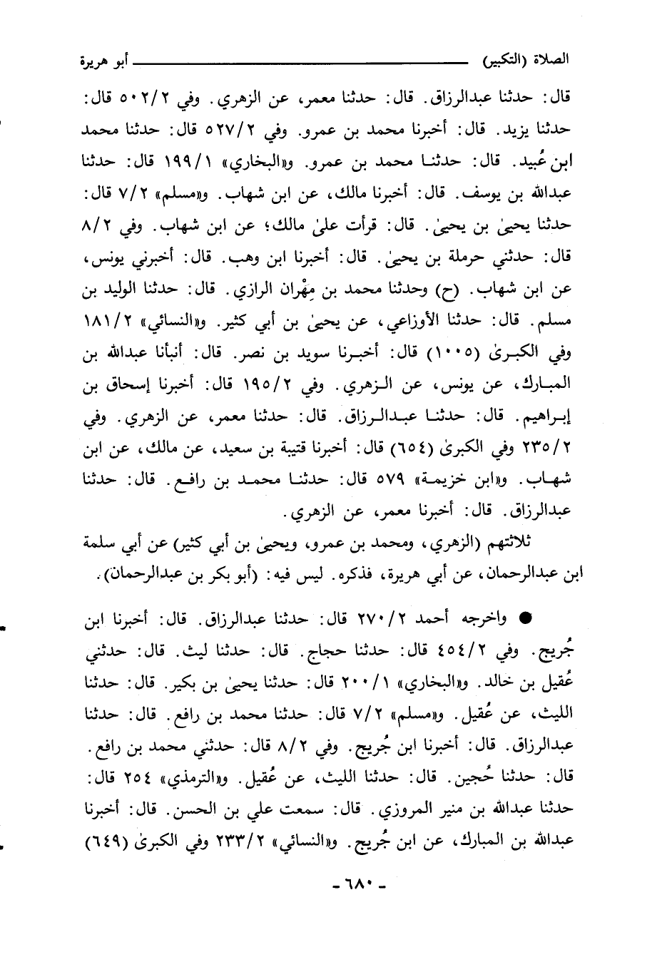قال: حدَّثنا عبد الرزاق، حدَّثنا معمر، عن الزهري. وفي ٢/ ٥٠٢ (١٠٥٢٦) قال: حدَّثنا يزيد، أَخْبَرنا محمد بن عمرو. وفي ٢/ ٥٢٧ (١٠٨٣٣) قال: حدَّثنا محمد بن عُبيد، حدَّثنا محمد بن عمرو. و ((البُخاري))]] ٧٨٥ قال: حدَّثنا عبد الله بن يوسف، قال: أَخْبَرنا مالك، عن ابن شهاب. و ((مسلم))]] ٧٩٦ قال: حدَّثنا يحيى بن يحيى، قال: قرأتُ على مالك، عن ابن شهاب. وفي (٧٩٩) قال: وحدثني حرملة بن يحيى، أَخْبَرنا ابن وهب، أخبرني يونس، عن ابن شهاب. وفي (٨٠٠) قال: حدَّثنا محمد بن مِهْران الرازي، حدَّثنا الوليد بن مسلم، حدَّثنا الأوزاعي، عن يحيى بن أبي كثير. و ((النَّسائي))]] ٢/ ١٨١، وفي ((الكبرى))]] ١٠٩٧ قال: أَخْبَرنا سويد بن نصر، قال: أنبأنا عبد الله بن المبارك، عن يونس، عن الزهري. وفي ٢/ ١٩٥، وفي ((الكبرى))]] ٦٥١ قال: أَخْبَرنا إسحاق بن إبراهيم، قال: حدَّثنا عبد الرزاق، قال: حدَّثنا معمر، عن الزهري. وفي ٢/ ٢٣٥، وفي ((الكبرى))]] ٧٤٥ قال: أَخْبَرنا قتيبة بن سعيد، عن مالك، عن ابن شهاب. و ((أبو يَعْلَى))]] ٥٩٤٩ قال: حدثنا وهب بن بقية، حدثنا خالد بن عبد الله، عن محمد بن عَمرو. وفي (٥٩٩٢) قال: حدثنا أحمد بن إبراهيم الدورقي، حدثنا مبشر بن إسماعيل الحلبي، عن الأوزاعي، عن يحيى بن أبي كثير. وفي (٦٠٢٩) قال: حدثنا كامل بن طلحة، حدثنا حماد بن سلمة، عن محمد بن عَمرو. و ((ابن خزيمة))]] ٥٧٩ قال: حدَّثنا محمد بن رافع، حدَّثنا عبد الرزاق، أَخْبَرنا معمر، عن الزهري. و ((ابن حبان))]] ١٧٦٦ قال: أَخْبَرنا