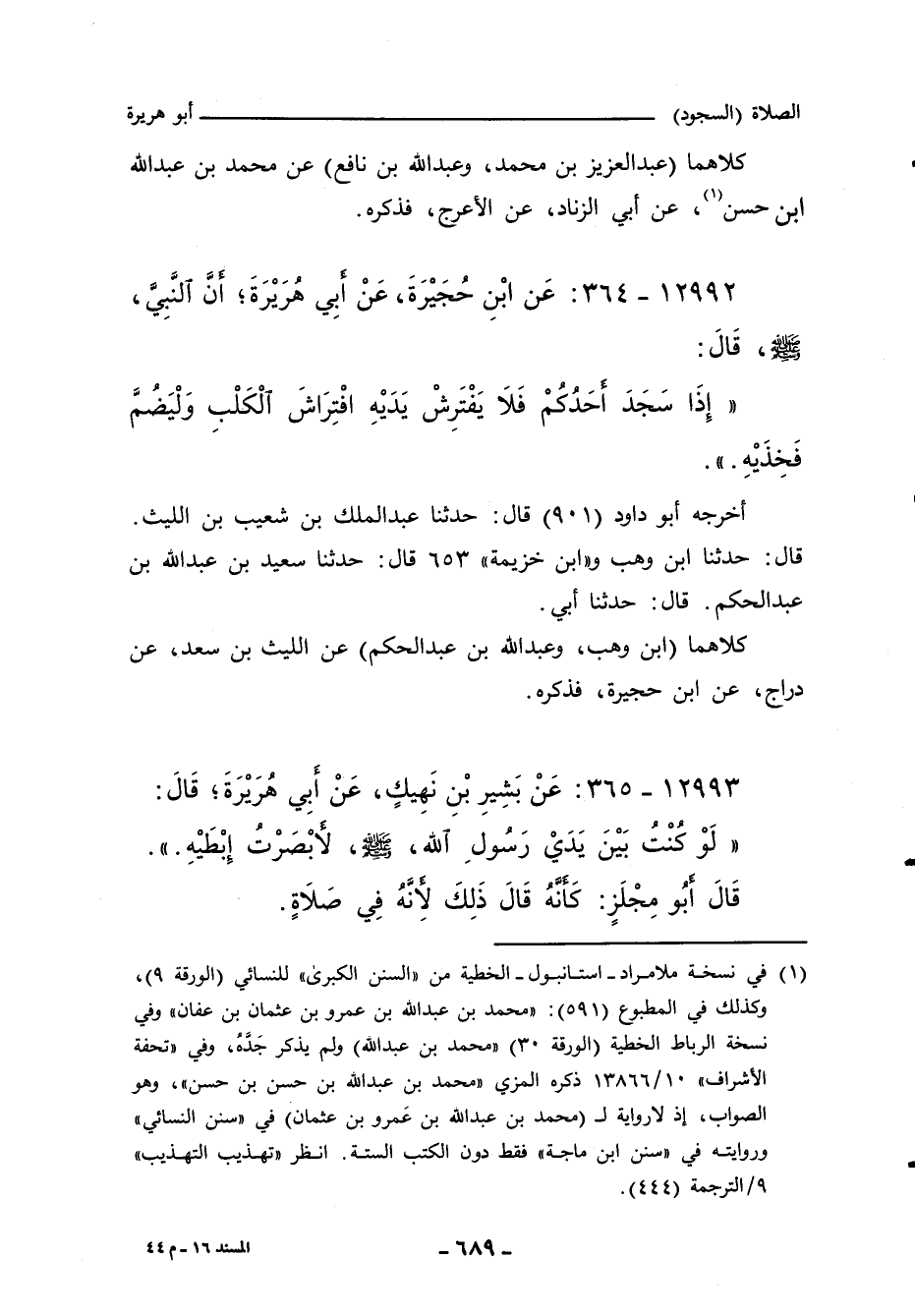 ١٢٩٩٢ - عَنِ ابْنِ حُجَيْرَةَ، عَنْ أَبِي هُرَيْرَةَ، أَنَّ النَّبِيَّ صلى الله عليه وسلم قَالَ: