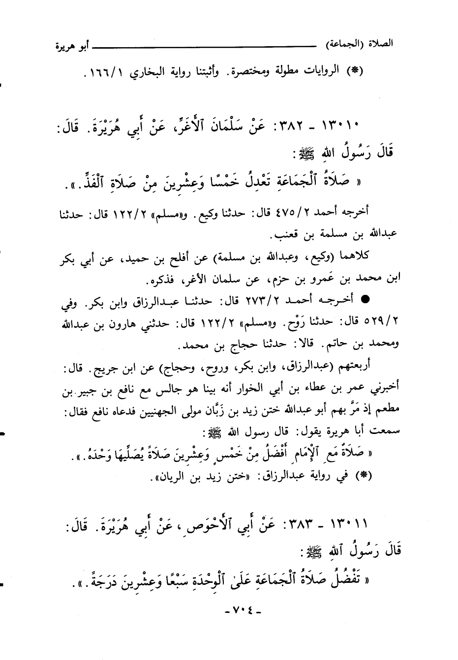 - وفي رواية: " (صَلَاةُ الْجَمَاعَةِ تَعْدِلُ خَمْسًا وَعِشْرِينَ مِنْ صَلَاةِ الْفَذِّ.) ".